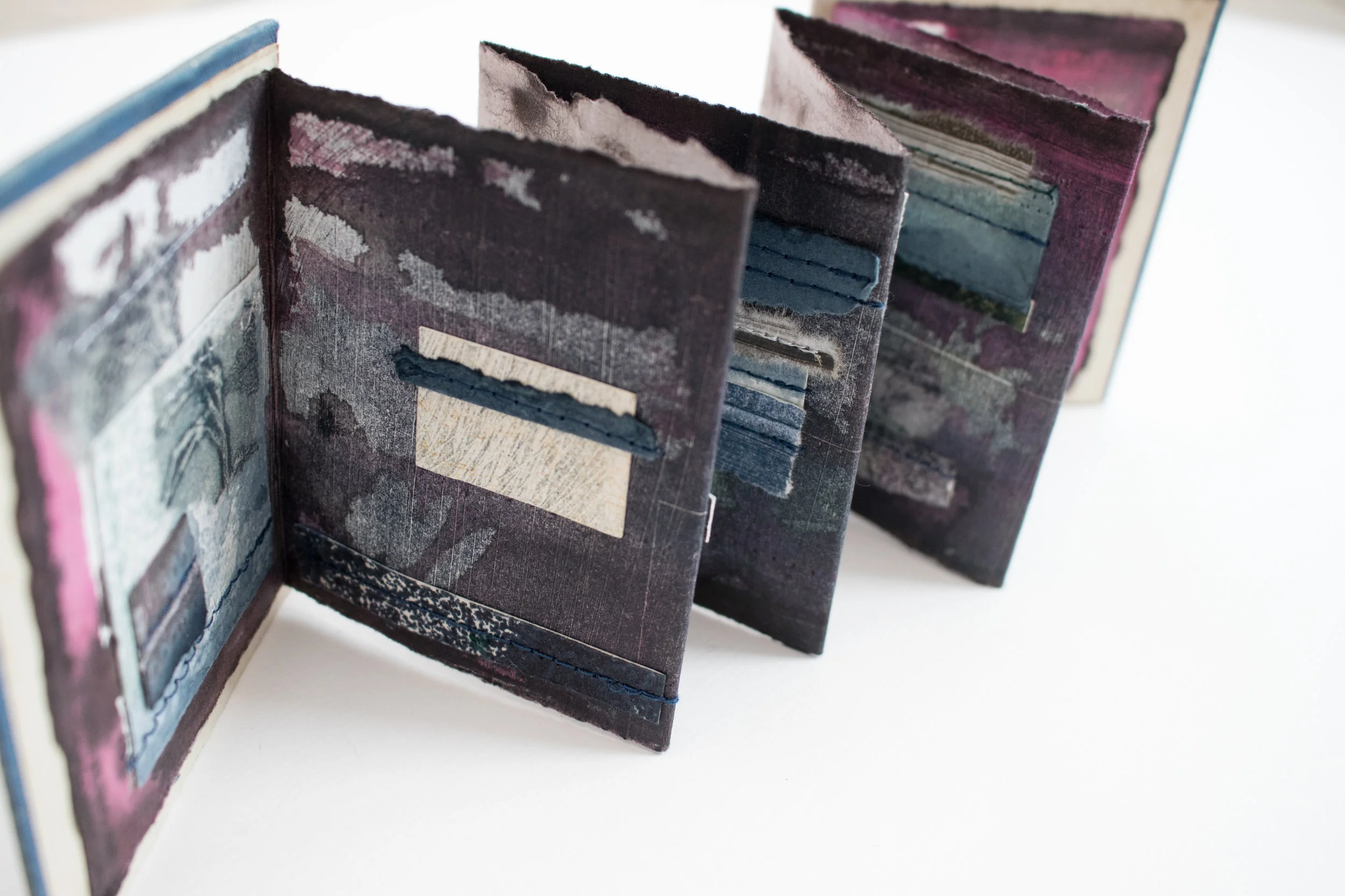 That love of books has been at the forefront of a group of book works I've recently completed using monoprint, collage and machine stitch.