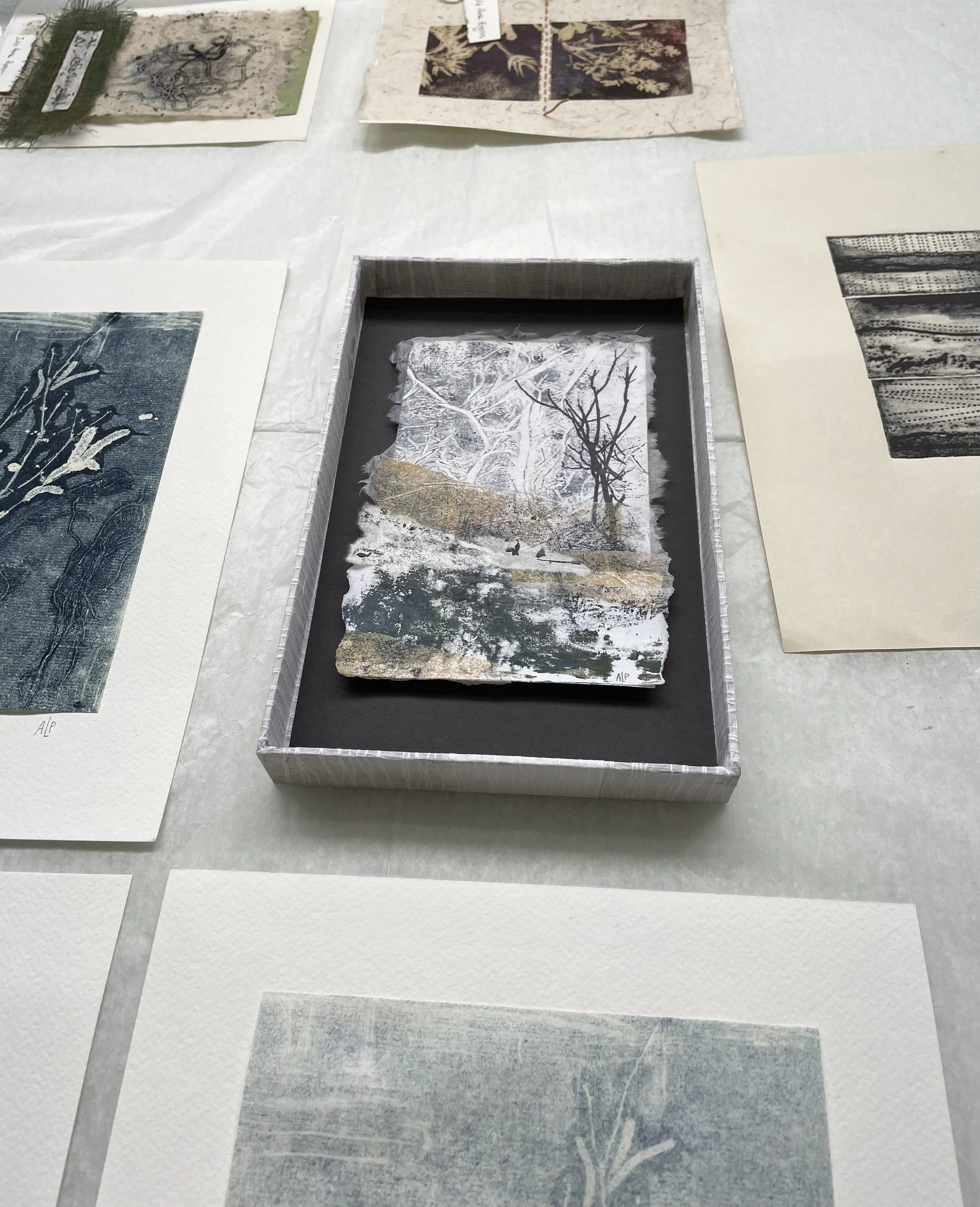 My 5 day workshop was focused on Printmaking combined with collage and assemblage. I was super lucky to have the most wonderful bunch of 12 workshop participants. Generous, caring and talented. A dream workshop bunch.
